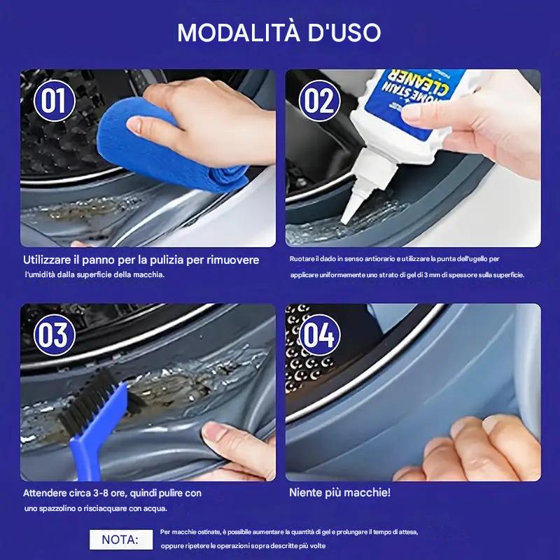 Applica direttamente il gel sulla zona interessata con il pennellino incluso, lascia agire, poi rimuovi e risciacqua. Muffa e macchie spariranno senza fatica. Un prodotto indispensabile per una casa igienizzata e curata.