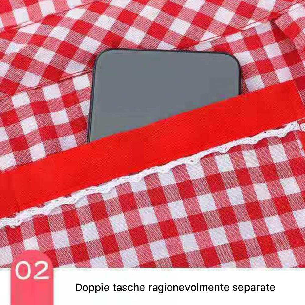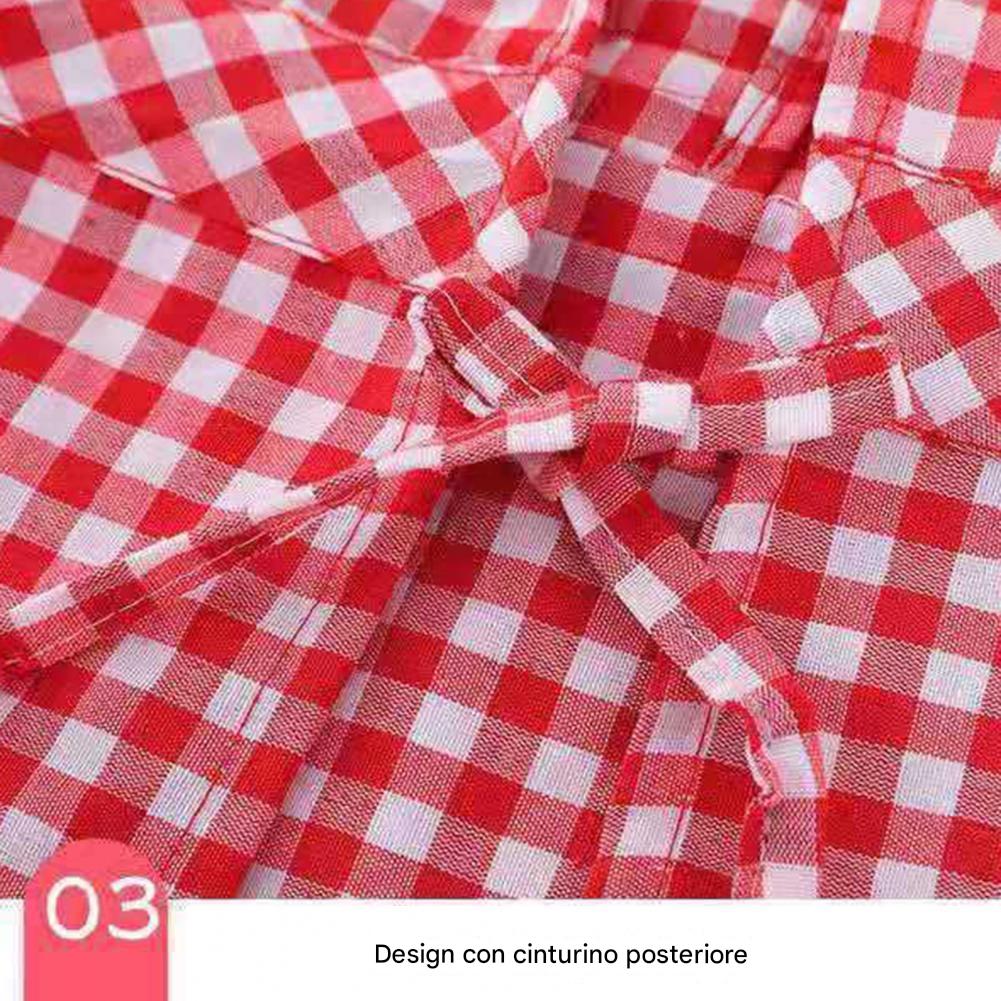 Questo grembiule da cucina in cotone e lino è progettato per chi ama cucinare senza rinunciare al comfort e all’eleganza. Il suo design a quadretti con collo a risvolto e 5 fibbie lo rende unico, funzionale e facile da indossare. Perfetto per cucine moderne, casalinghe creative e chef casalinghi!